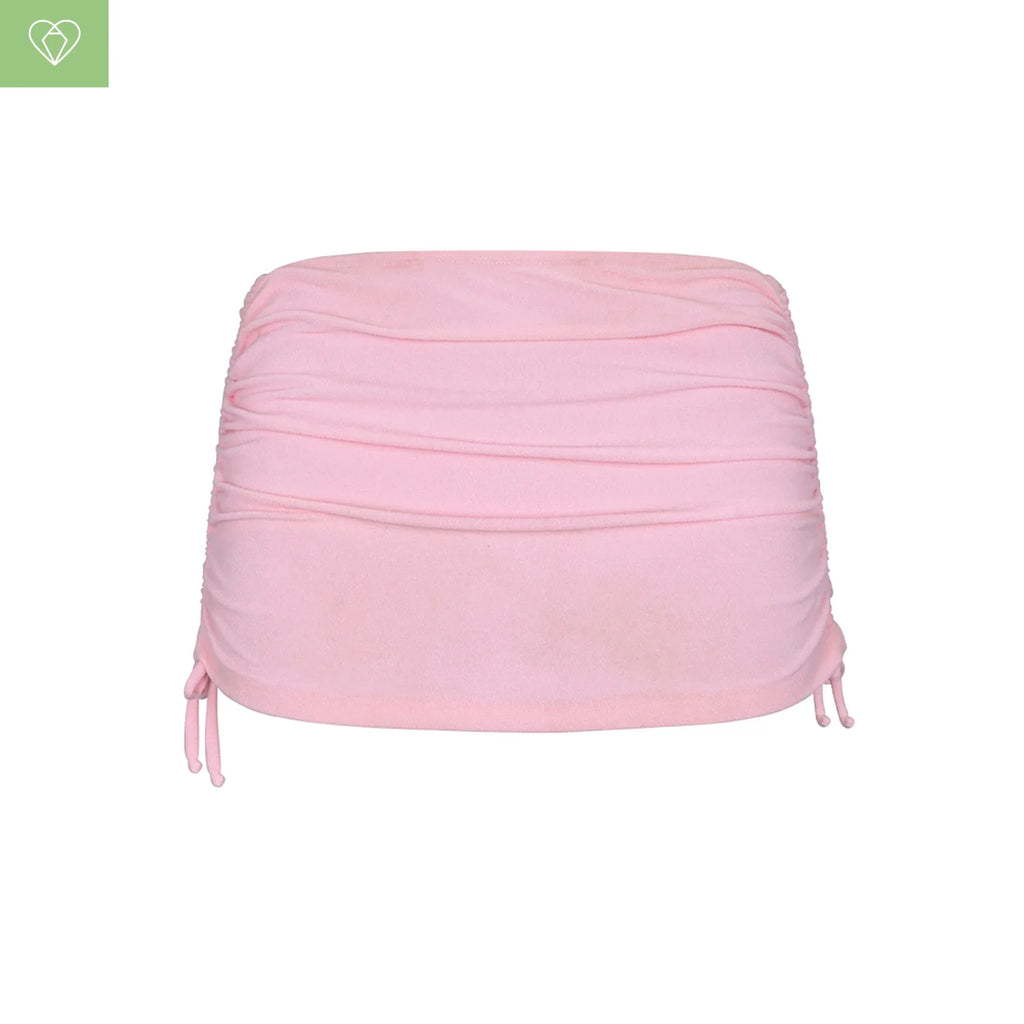 Versatility and style in one piece. Our adjustable mini skirt is the perfect complement to wear with our iconic Barbie bikini, though its versatile design allows you to pair it with any of your favorite looks. Super comfortable and made from sustainable fabric, this mini skirt cares for both your style and the planet.
