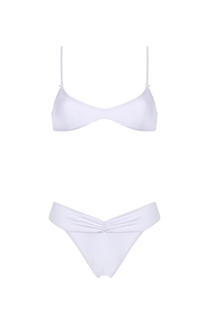 Elegance and comfort in a design made for you. The Swan panties in white feature a flattering V-front and a ruched waistband that provides a comfortable, flattering fit. Their modern cut enhances the figure, making them the perfect match for the Swan top for a flawless beach or poolside look.
